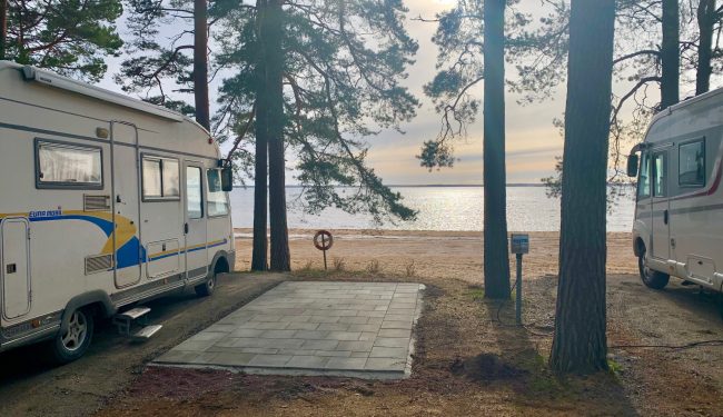 Erleben Sie unsere beliebten Wohnmobilstellplätze mit einem erstaunlichen Blick über den Vänernsee. Natürlich haben wir auch ruhige Bereiche.