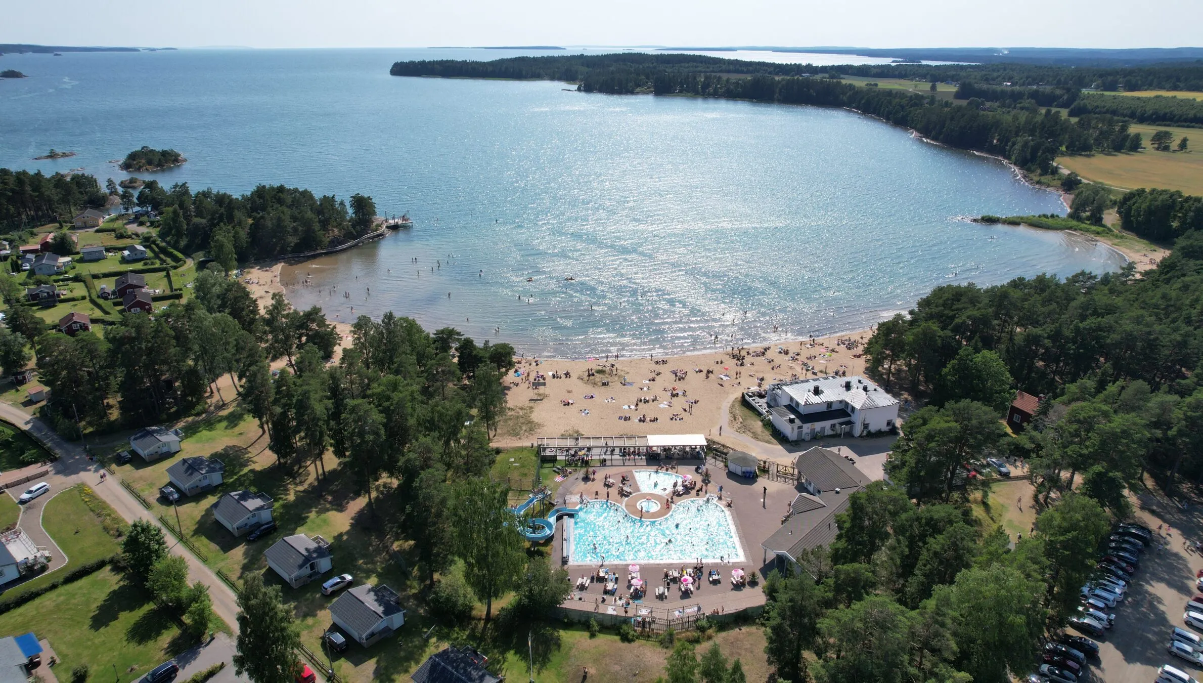 Wenn Sie gerne schwimmen, ist Harge der richtige Ort dafür. In Hargebaden können Sie sich in den flachen Gewässern vergnügen, vom Sprungturm eintauchen oder in unserem beheizten Pool herumplanschen, der auch eine Wasserrutsche umfasst.